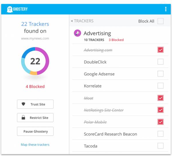 Satu lagi extension browser yang bisa kamu gunakan untuk mendeteksi tracker. Kamu bisa mendapatkan Ghostery untuk Chrome dan Firefox.