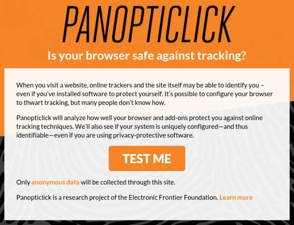 Panopticlick adalah situs yang bisa kamu kunjungi untuk mengetahui adakah orang yang melacak keberadaanmu. Ia bisa menganalisis pengaturan browsermu, termasuk add-ons dan extension untuk mengukur berapa banyak orang yang melacak aktivitas browser.
