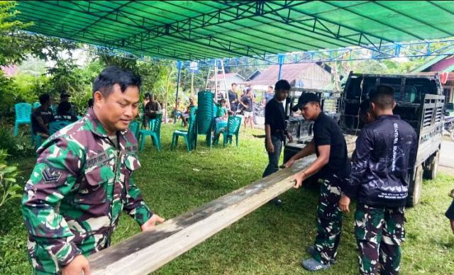 Anggota Satgas TMMD Bantu Warga Berduka di Kampung Linggang Amer