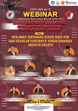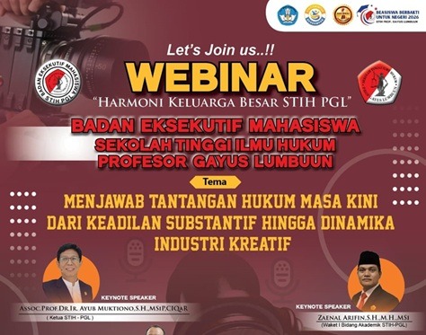 Jakarta | Lapan6Online : Badan Eksekutif Mahasiswa (BEM) Sekolah Tinggi Ilmu Hukum Prof. Gayus Lumbuun (STIH-PGL) Jakarta, menggelar Webinar Nasional yang diikuti segenap civitas akademika, mahasiswa, dan alumni.