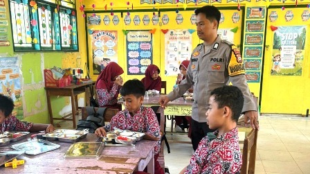 Kehadiran Bhabinkamtibmas bersama Kepala Sekolah dan wali kelas di setiap rombongan belajar menjadi bagian penting untuk memastikan distribusi berjalan tertib, tepat sasaran, dan dikonsumsi tepat waktu oleh para siswa.