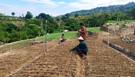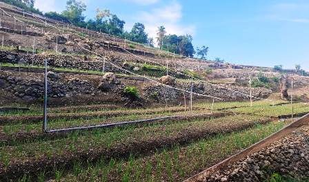 Menurutnya jagung dan bawang sangat potensi dikembangkan khususnya masyarakat Petani di desanya sudah 2 kali panen hasilnya sangat memuaskan dan ada peningkatan.