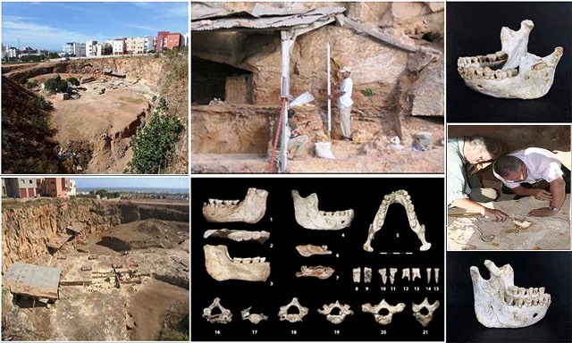 “Tiga tulang rahang, termasuk satu dari seorang anak, gigi, tulang belakang, dan tulang paha ditemukan dari sebuah gua yang dikenal sebagai Grotte à Hominidés di Thomas Quarry di Casablanca, Maroko, yang berasal dari 773.000 tahun,”