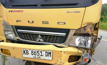 Sementara pengemudi dump truk Mitsubishi Fuso kuning bernomor polisi KB 8651 DM diketahui bernama Markus Toni (37), warga Dusun Layau, Desa Palem Jaya, Kecamatan Parindu, Kabupaten Sanggau. Berdasarkan keterangan awal, Markus sedang mengemudikan truk dari arah yang sama.