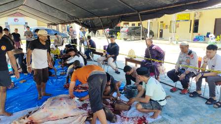 “Melalui momen ini, kita tingkatkan tali persaudaraan dan kepedulian terhadap sesama, di mana bagi orang yang tidak mampu juga dapat menikmati daging kurban saat Idul Adha,” tutur AKBP Muhammad Amiruddin.