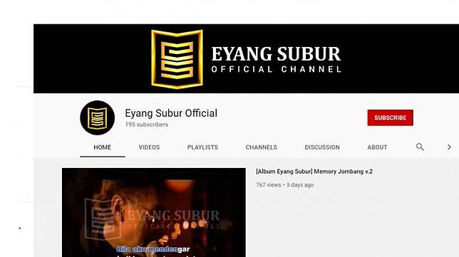 Video pertama milik Eyang Subur baru diunggah pada 2 November lalu. Melansir Suara.com diberitakan, dengan jumlah subscriber 195 orang, channel YouTube ini berisi dirinya yang tampil bersama istrinya.