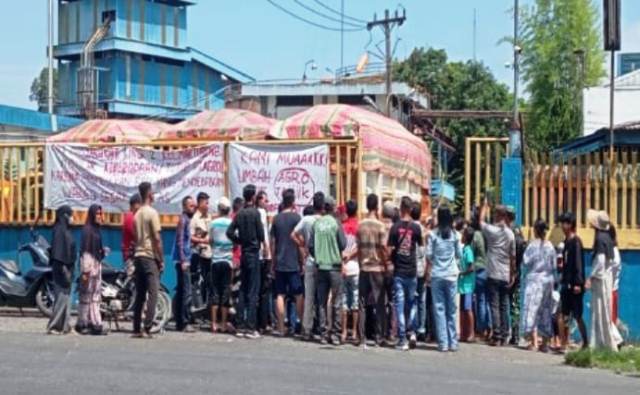 warga Lingkungan 2 Kelurahan Martubung, Kecamatan Medan Labuhan demo di depan PT Agro Jaya Perdana, pengolahan minyak mentah (CPO) di Jalan KL Yos Sudarso KM 15,5 Medan Labuhan, Kota Medan, tepatnya pada Senin (7/6/2025)/Foto : Ist.