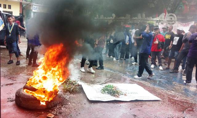 “Aksi masa mulai memanas merangsek masuk ke halaman gedung Pengadilan dengan menjebol pintu pagar dan membakar ban bekas dihalam pintu masuk gedung. Masa aksi juga merobohkan tiang papan nama Pengadilan dan membakarnya,”