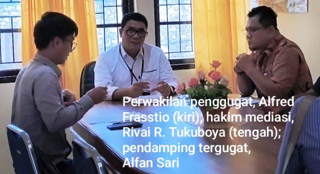 Anehnya, pihak PN Sorong melalui hakim mediasi, Rivai Rasyid Tukuboya, S.H., terkesan seia-sekata dengan kuasa hukum yang mewakili sang perwakilan penggugat. Hakim ini terlihat berpihak dengan mendukung ide untuk segera masuk ke tahap persidangan, yang artinya sidang mediasi dianggap gagal karena tergugat menolak untuk menerima proposal ‘bagi dua’ lahan obyek sengketa dan bayar kompensasi Rp. 2,5 miliar.