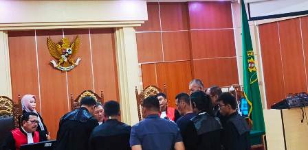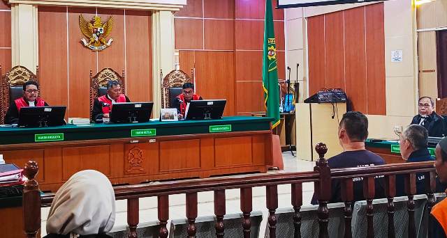 Jambi | Lapan6Online : Negeri (PN) Jambi menjalani sidang lanjutan Mafi Abidin dan Tikuy dalam satu frame atas tersangka kasus tindak pidana narkotik jenis sabu, pada Selasa (10/06/25).