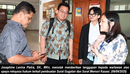 Usai sidang perkara ini, kuasa hukum Penggugat, Josephine Levina Pietra, yang hadir didampingi dua orang magang, menolak memberikan tanggapan kepada wartawan yang menanyakan upaya rekayasa hukum terkait pembuatan Surat Gugatan Perkara 212/G/2025/PTUN.JKT dan Surat Memori Kasasi Perkara No. 2070 K/PDT/2025.