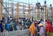 “Pengecoran tiang masjid ini membutuhkan banyak tenaga. Karena itu, kami kerahkan personel Satgas yang berada di kotis bersama masyarakat agar pekerjaan ini cepat selesai...