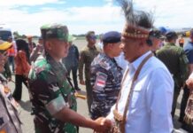 Dandim 1710/Mimika Sambut Kedatangan Menkopolkam RI Saat Melaksanakan KunKer di Wilayah Kabupaten