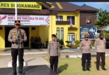 Kapolres Singkawang Pimpin Upacara Purna Bakti Dua Personel Polri