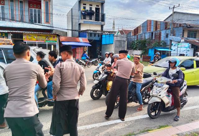 Menjelang waktu berbuka puasa, sejumlah personel Polres Majene turun langsung ke tepi jalan untuk membagikan paket takjil kepada para pengendara yang melintas di jalur tersebut.