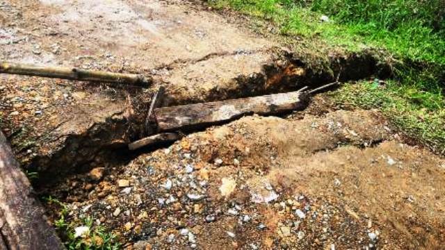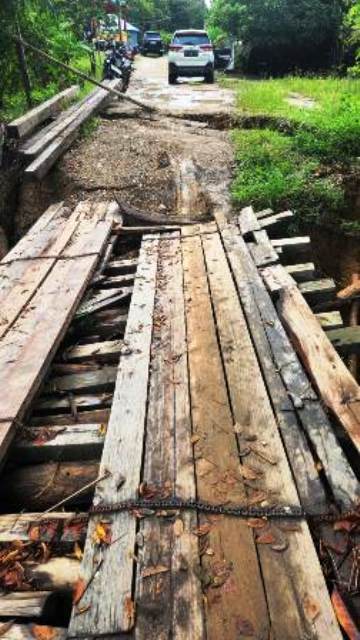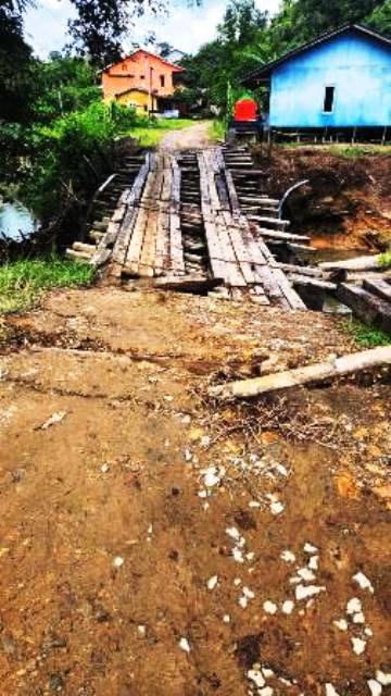 Karena semenjak hujan lebat yang melanda kampung tersebut, pada 2 Oktober 2025 mengakibatkan tanah di pinggir jembatan longsor. Sehingga jembatan kayu tersebut nyaris putus, dari semenjak itulah hingga saat ini belum diperbaiki oleh pihak perusahaan.