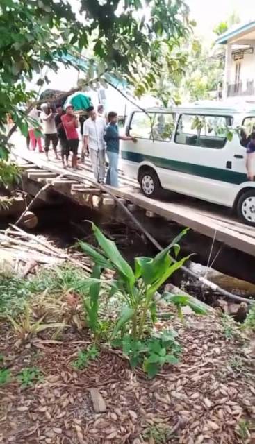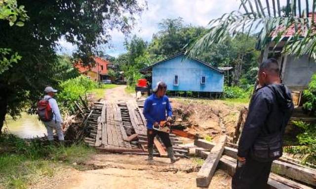 Baik terima kasih, kami dari perusahaan Merespon baik permintaan dari masyarakat di sekitar, yang untuk memperbaiki jembatan ya kita saat ini memperbaiki atau merenovasi menggunakan kayu log dulu, dan rencana kita alatnya sampai di sini antara hari Senin ataupun hari Selasa.