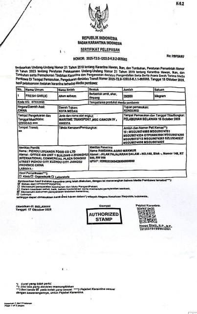 “Bawang yang dibawa truk tersebut legal dan seluruh dokumennya lengkap. Kami telah menunjukkan bukti keabsahan dokumen impor dan karantina kepada pihak berwenang,”